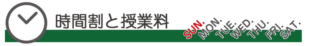 | ●大学受験クラスは夏期/冬期講習があります。 ●高2クラス勉強内容(火)文法読解(金)単語リスニング・スピーキング・作文 ●各クラスとも「少数精鋭」クラスです。 ●授業料はすべて税込み価格です。 ●入会金は10,000円です。 ●教材費は授業料の中に含まれます。 ●10月に光熱費として5,000円 ●家族割あり。(詳しくは下記をご覧ください。) ●月曜定休。 |